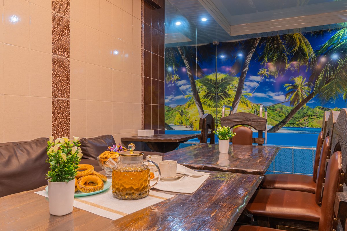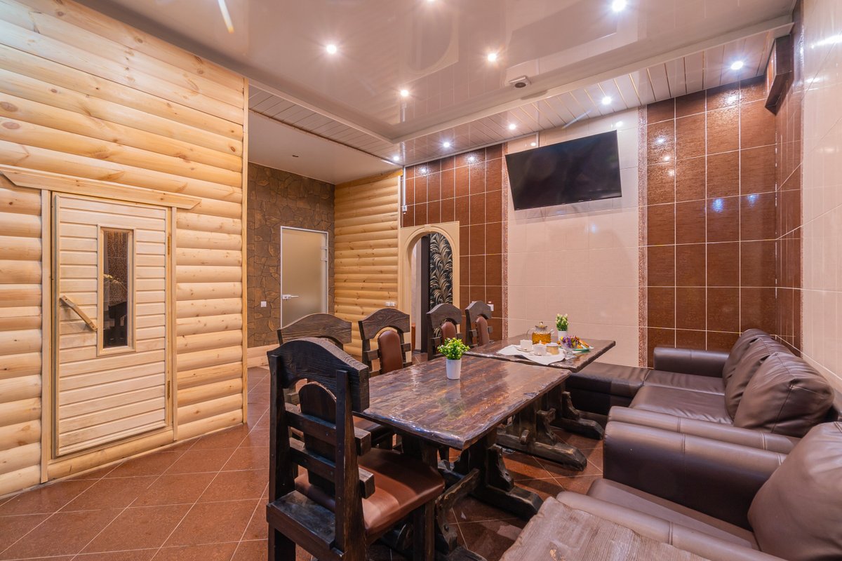 Не хочется в бассейн? Не беда! Вместо этого можно посидеть в нашей комнате отдыха. Мы постарались создать здесь комфортный, стильный интерьер из максимально натуральных, безопасных материалов, подобрать мебель, которая будет одновременно удобной и эстетичной. Надеемся, что вам понравится! Для создания настроения мы можем предложить вам кальян. Также у нас работает бар, где вы можете приобрести блюда русской кухни, а если нужно, прийти и со своей едой - мы не возражаем! Главное помните, что плотная трапеза незадолго перед посещением парной - это не самая хорошая идея, согласно мнению терапевтов. А вот после парной - совсем другое дело!